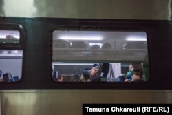 Поезд приятно удивляет: там тепло и комфортно. Это экспресс — с чистыми вагонами и обитыми голубым бархатом креслами. В феврале все было иначе. Бегущие от войны описывали переполненные вагоны, детей, спящих на грудах сумок, и взрослых, которым оставалась только стоять.