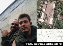 К югу от Изюма, западнее Каменки, Радио Свобода обнаружило еще одну возможную позицию российских военных. Она попала на фото, выложенное 27 августа 34-летним жителем Санкт-Петербурга Александром Табелевым (судя по аккаунтам его родных, это настоящее имя). У всех людей на этом снимке аккаунты закрыты, и лишь Табелев не только сделал доступным для всех желающих свой профиль, но и не выключил геолокацию на телефоне, когда попросил кого-то из сослуживцев сделать красивый кадр (на нем он — второй слева).